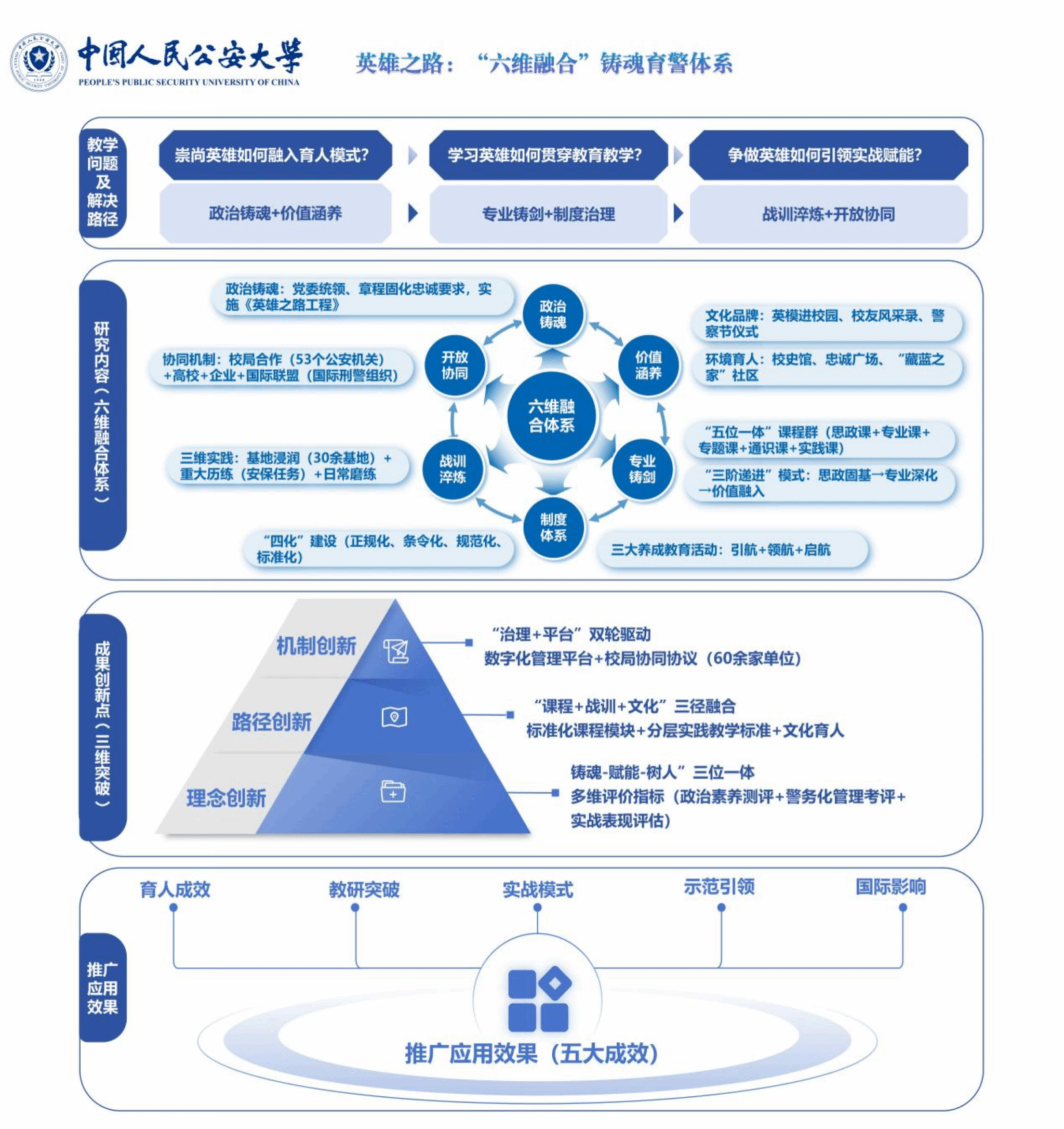 基本信息 成果名称:忠诚铸魂·精武砺能·数智淬技:新时代卓越警务人才培养的“公大模式” 成果完成人:王 轶 、罗亚平、 谢晓专、 邹湘江、 戴 蓬、翟金鹏、王 龙、李春雷、李 欣、王建新 郑 重、 李建龙、 张培晶、 白 洁、 赵 丹、高 见、裴俊良 成果完成单位:中国人民公安大学 成果类别代码:030119 成果简介 成果简介(建议文字+图片)。 成果推荐书 ...