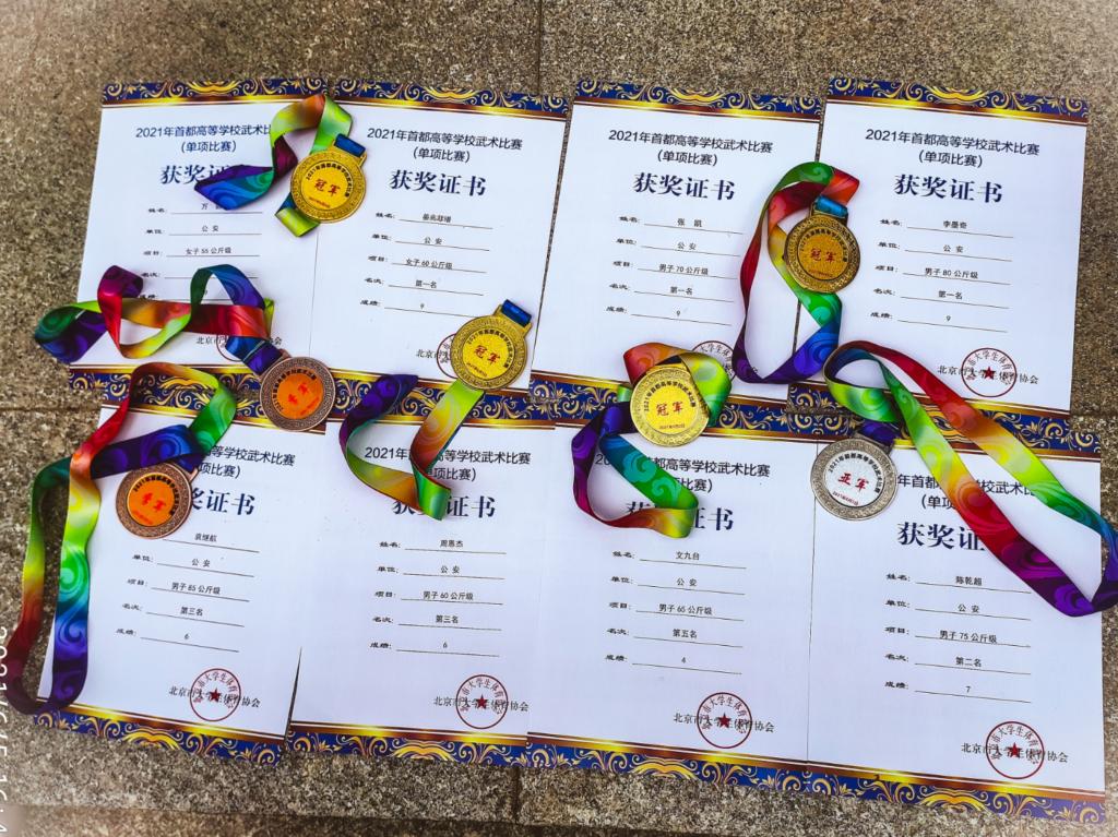 2021年首都高等学校武术比赛(单项比赛)于6月5日至6日在北京航空航天大学隆重举行。我校选派8名散打队员和12名武术队员参赛。经激烈角逐,我校散打代表队共获4枚金牌、1枚银牌、2枚铜牌,并取得团体总分第一名;武术代表队共获得2枚金牌、1枚银牌、2枚铜牌,取得团体总分第六名。