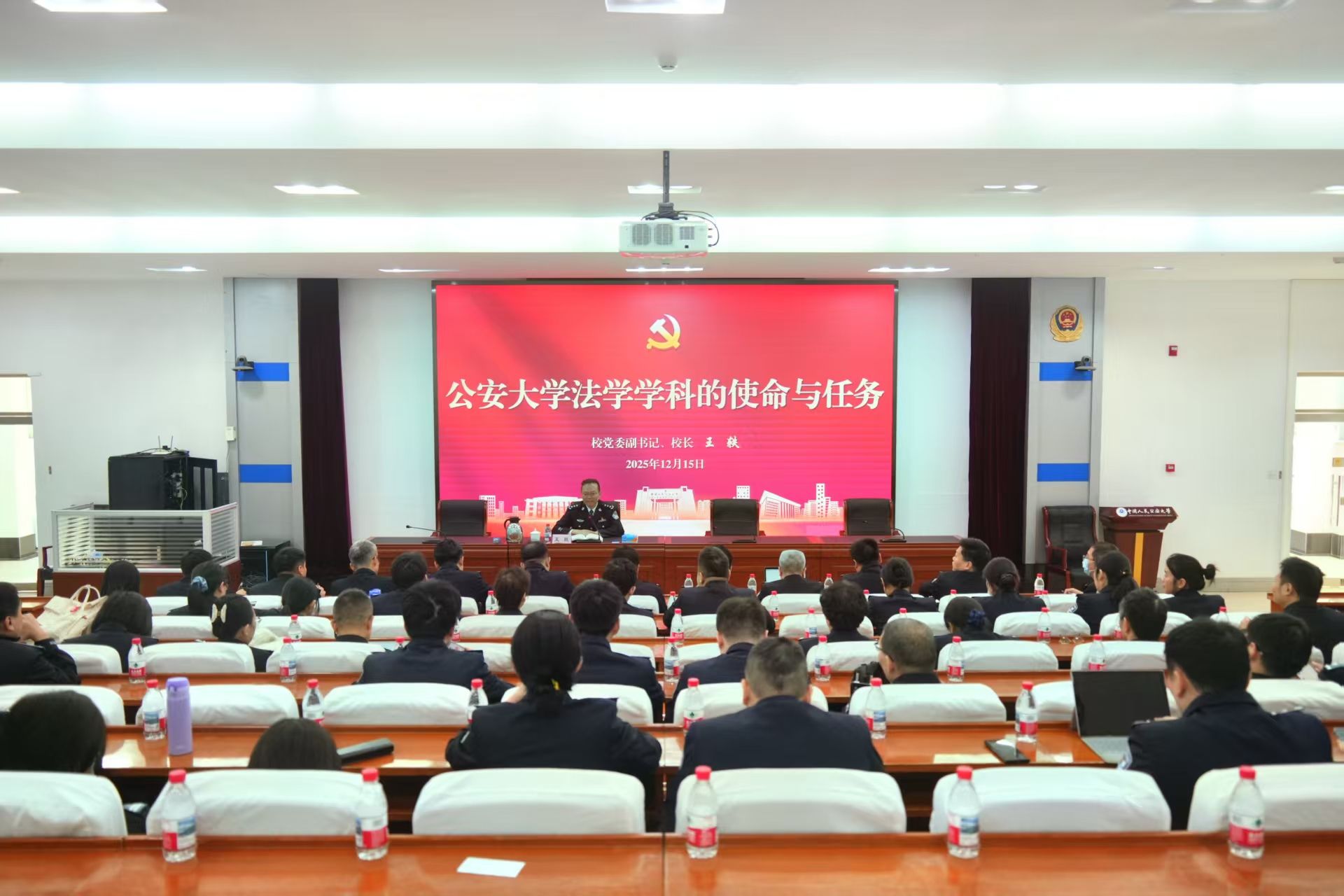 2025年12月15日上午,中国人民公安大学党委副书记、校长王轶在木樨地校区阶梯教室一为法学院、审计处讲授“公安大学法学学科的使命与任务”专题党课,法学院、审计处全体教职工参加。