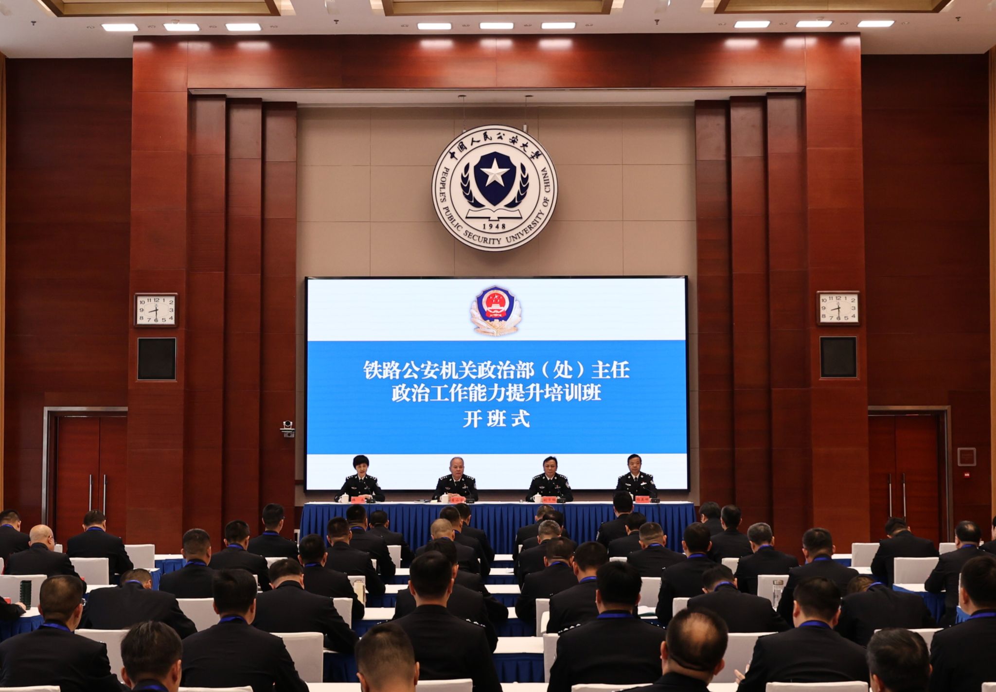 4月21日,铁路公安机关政治部(处)主任政治工作能力提升培训班在我校开班,公安部铁路公安局党委副书记、政委李永实作动员讲话,校党委副书记、公安部高级警官学院院长刘宇鹏致辞,公安部铁路公安局副局长韩晶、公安部高级警官学院副院长杨英明出席开班式。