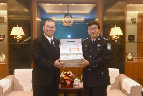樊京玉书记在会见中指出,近年来,在双方的共同努力下,公安大学与台湾警察大学保持着密切的联系,建立了良好的合作关系。双方代表团实现了多次互访,两校教师也就共同关心的问题进行着深入的交流。警察院校是警察实务部门的智库和参谋,加强两岸警察教育培训部门的交流合作,将对提高两岸警方执法办案能力、携手打击跨境犯罪、共同维护地区安全稳定起到积极作用。公安大学十分重视与台湾警察大学间的交流合作,也将一如既往地积极推动这项工作的进一步开展,不断深化合作的广度与深度,提升合作的质量与水平,切实为推进海峡两岸警务执法务实合作而做出不懈努力。