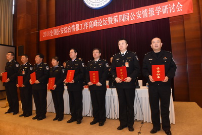 2014年12月27日至29日,由我校和公安部情报中心共同主办、反恐学院承办的2014全国公安综合情报工作高峰论坛暨第四届公安情报学研讨会在木樨地校区高警楼举行。公安部情报中心主任黄洪,校党委书记、校长程琳,校党委副书记、政委黄祖跃,校党委委员、副校长田全华,公安部情报中心副主任王智民、杨静宏、吴晓霞等领导出席会议,并向近年来在公安综合情报工作中表现突出的先进集体和在2014年重点课题评选中获奖的单位颁发证书。