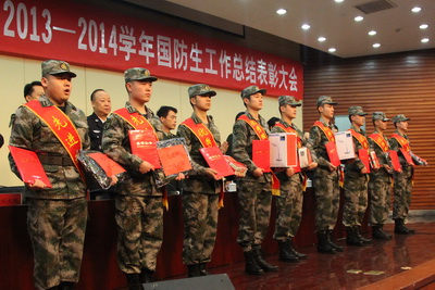 会上,来自国防生大队的1个排、4个班集体、24名优秀个人和16名优秀学生干部受到表彰。与会领导向受表彰的集体和个人代表颁发证书。