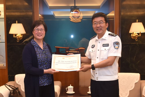 樊京玉书记向丁芙蓉主任颁发我校马克思主义学院和公安党建研究所特约研究员聘书