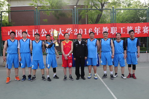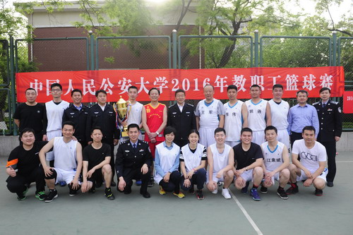 4月25日下午,我校2016年教职工篮球赛决赛圆满落下帷幕。学生工作处队,警务指挥战术系队,研究生院、法学院、进修部联队,校办公室、组织人事处、计划财务处、保卫处、审计处、军队保卫学院联队,分别夺得冠、亚、季军和优胜奖。校党委书记樊京玉、党委副书记黄祖跃为获奖队伍颁发奖杯。
