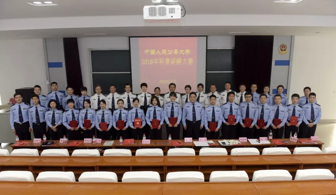 为贯彻落实习近平新时代中国特色社会主义思想和党的十九大精神,深入推进创新驱动战略和科技兴警战略,普及科学知识,弘扬科学精神,让科技发展成果更广泛惠及公安工作和公安队伍建设,2018年4月28日,我校首届科普讲解大赛在木樨地校区举行。校党委委员、副校长汪勇出席了科普讲解大赛并为获奖师生颁奖,各教学单位和学管部门推荐的24名选手参加比赛,200余名师生代表观看比赛。