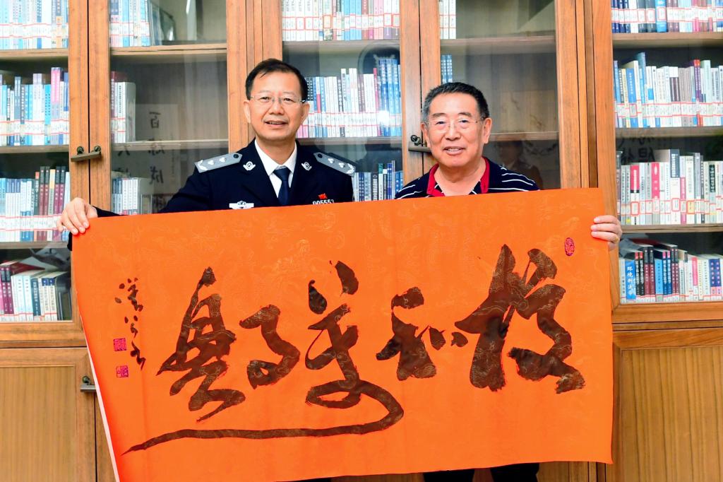 在学校庆祝建校70周年华诞之际,为展现全国公安最高学府的深厚文化底蕴和公大人侠骨丹心的独特精神气质,10月8日,“翰墨写忠诚、丹青绘警魂”——庆祝建校70周年校友书画展在木樨地校区图书馆开展。校党委副书记黄祖跃与中国民族书画研究院副院长漠公先生共同为书画展揭幕。