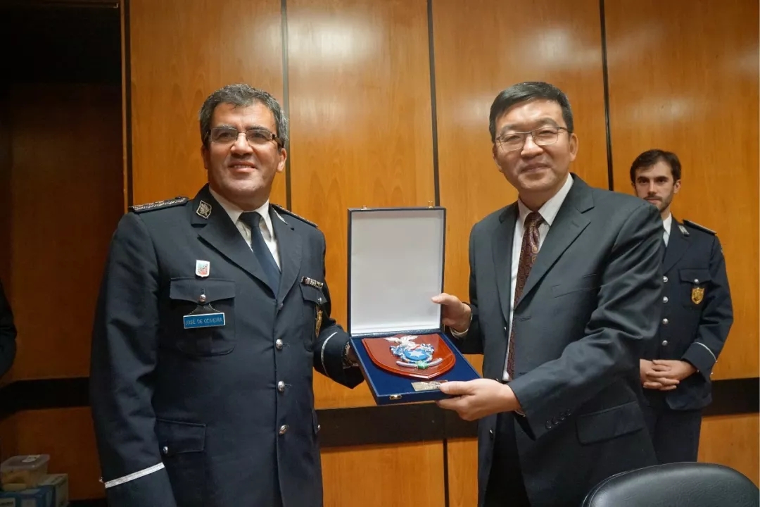 樊京玉书记与葡萄牙警察总局奥里维拉副局长交换纪念品