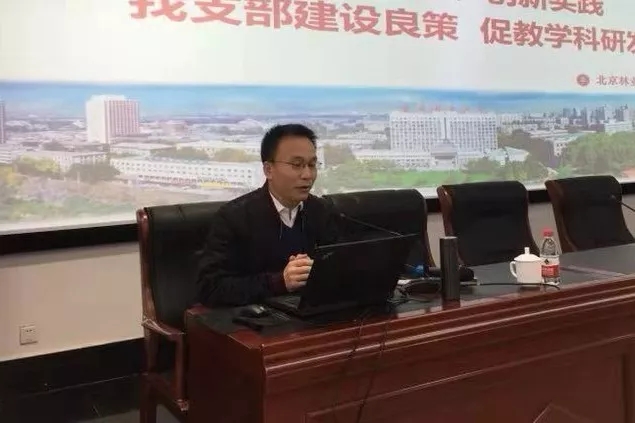 北京林业大学理学院数学系教师党支部书记王三强介绍党支部工作经验