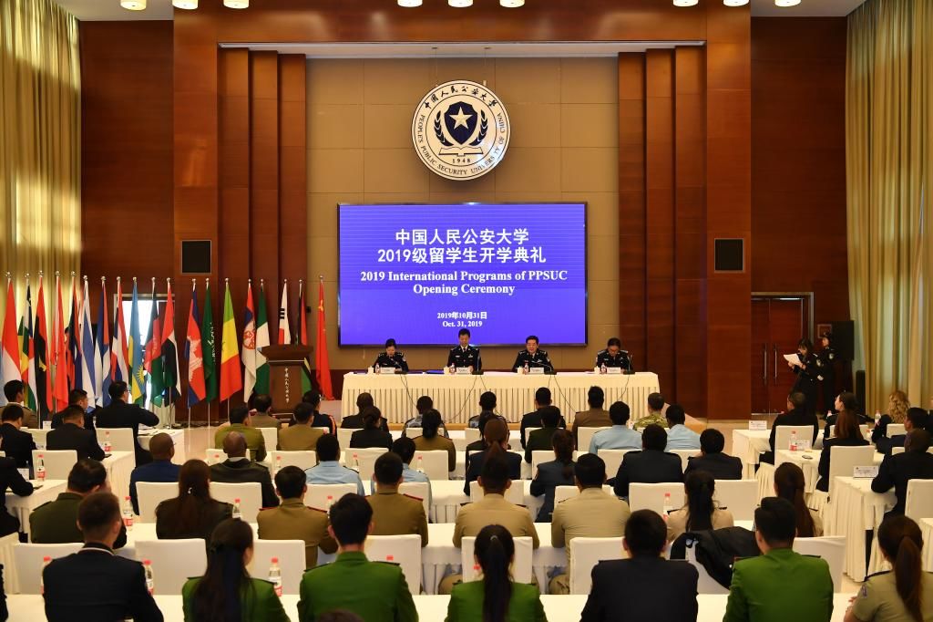 2019年10月31日下午,我校2019级留学生开学典礼在木樨地校区举行。校党委书记陈定武同志接见全体留学生,代表全校师生对来自26个国家的71名留学生表示欢迎,并勉励他们积极面对国际执法安全合作新形势,充分把握来华学习机遇,努力学习新知识,掌握新技能,进一步加深对中国国情及警务工作的认识与理解,共同为促进国际执法交流与合作、构建国际安全治理新体系贡献力量。