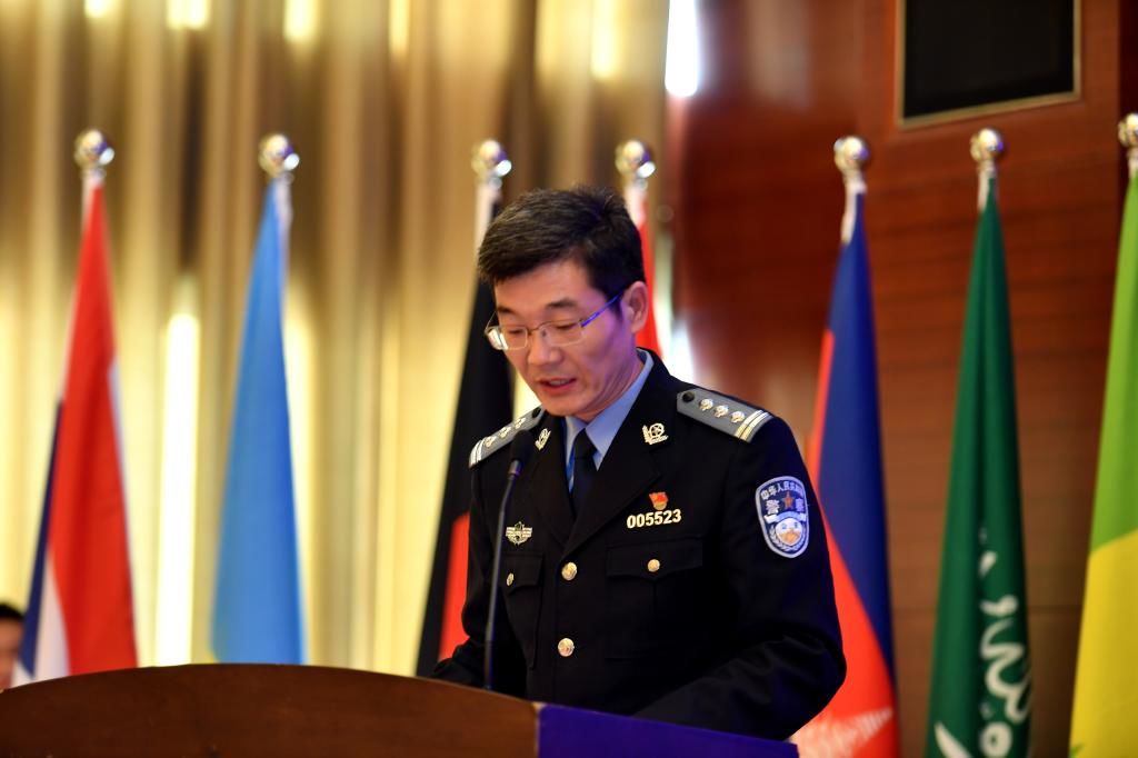 公安部国际合作局局长廖进荣同志出席典礼并致辞。他指出,新中国成立70年来,为国际社会贡献了经济持续健康发展、社会持续安全稳定两大奇迹,成为世界上最有安全感的国家之一。中国始终倡导与各国一起打击犯罪,应对非传统安全。他希望全体留学生争做推动国际执法安全合作创新发展的践行者、中外人文交流的传播者,成为中国与世界各国加强执法合作的桥梁。